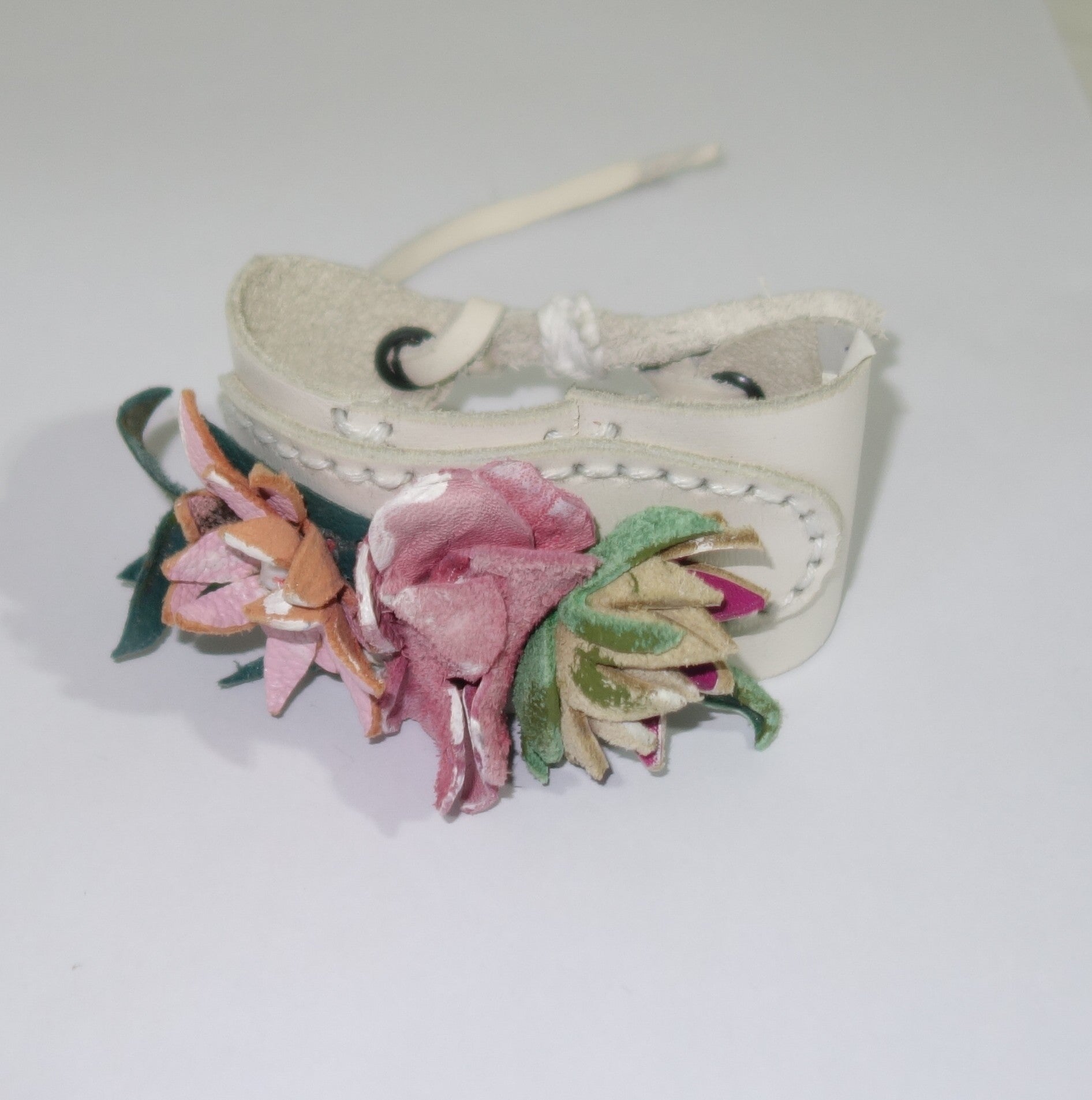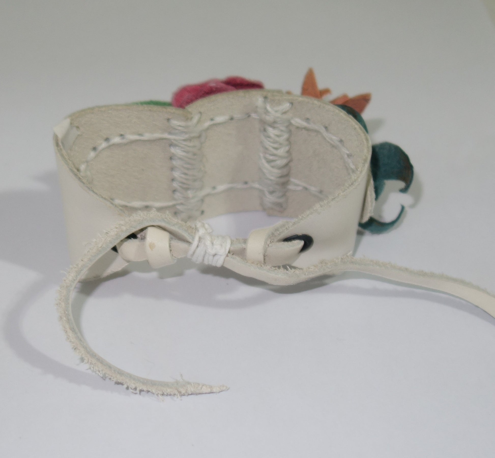 Bratara din piele naturala pictata manual, lata de 4 cm, inchidere snur piele .