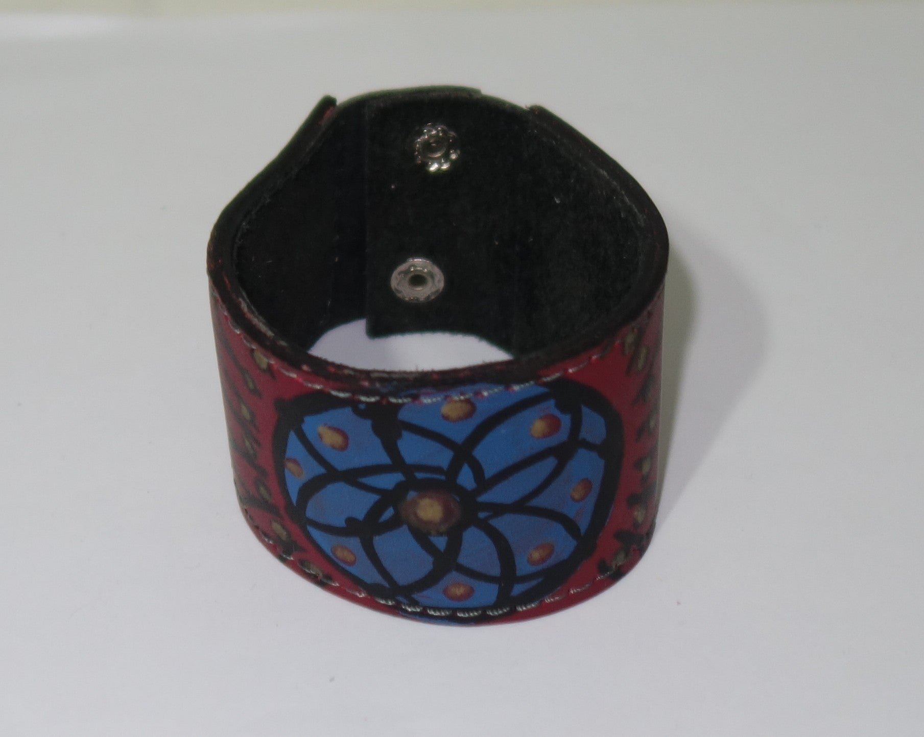 Bratara din piele naturala pictata manual, lata de 4 cm, inchidere cu 2 capse .
