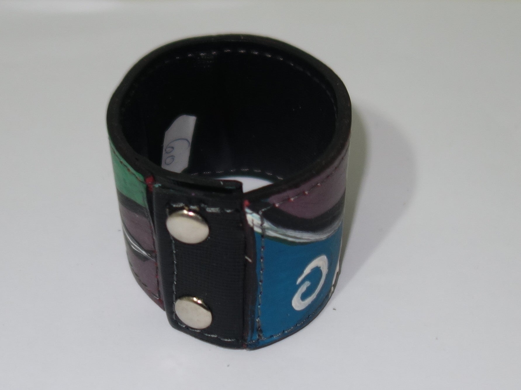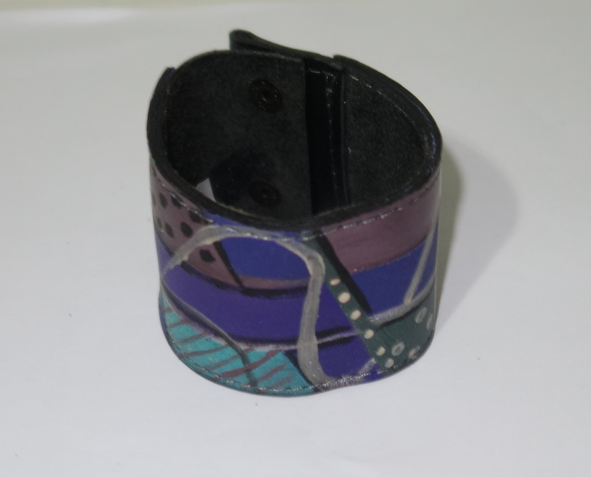 Bratara din piele naturala pictata manual, lata de 4 cm, inchidere cu 2 capse.