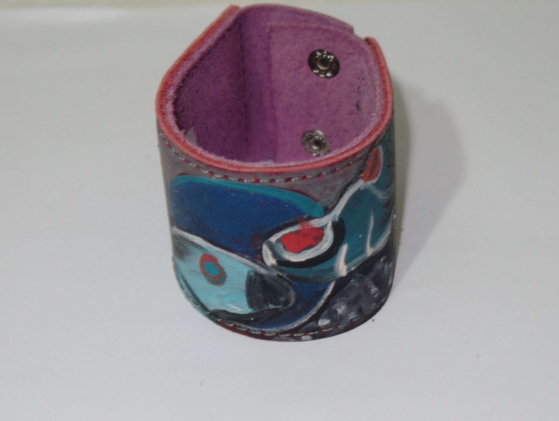 Bratara din piele naturala pictata manual, lata de 4 cm, inchidere cu 2 capse .