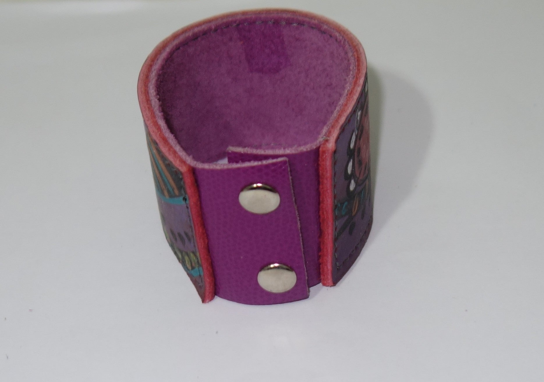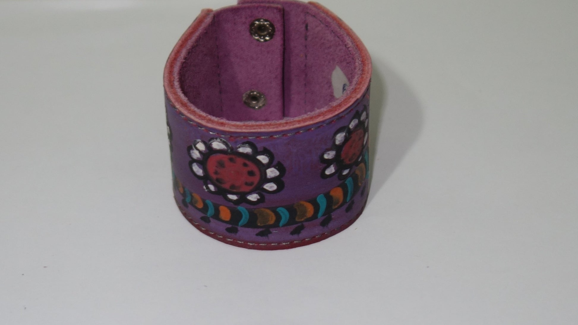 Bratara din piele naturala pictata manual, lata de 4 cm, inchidere cu 2 capse .