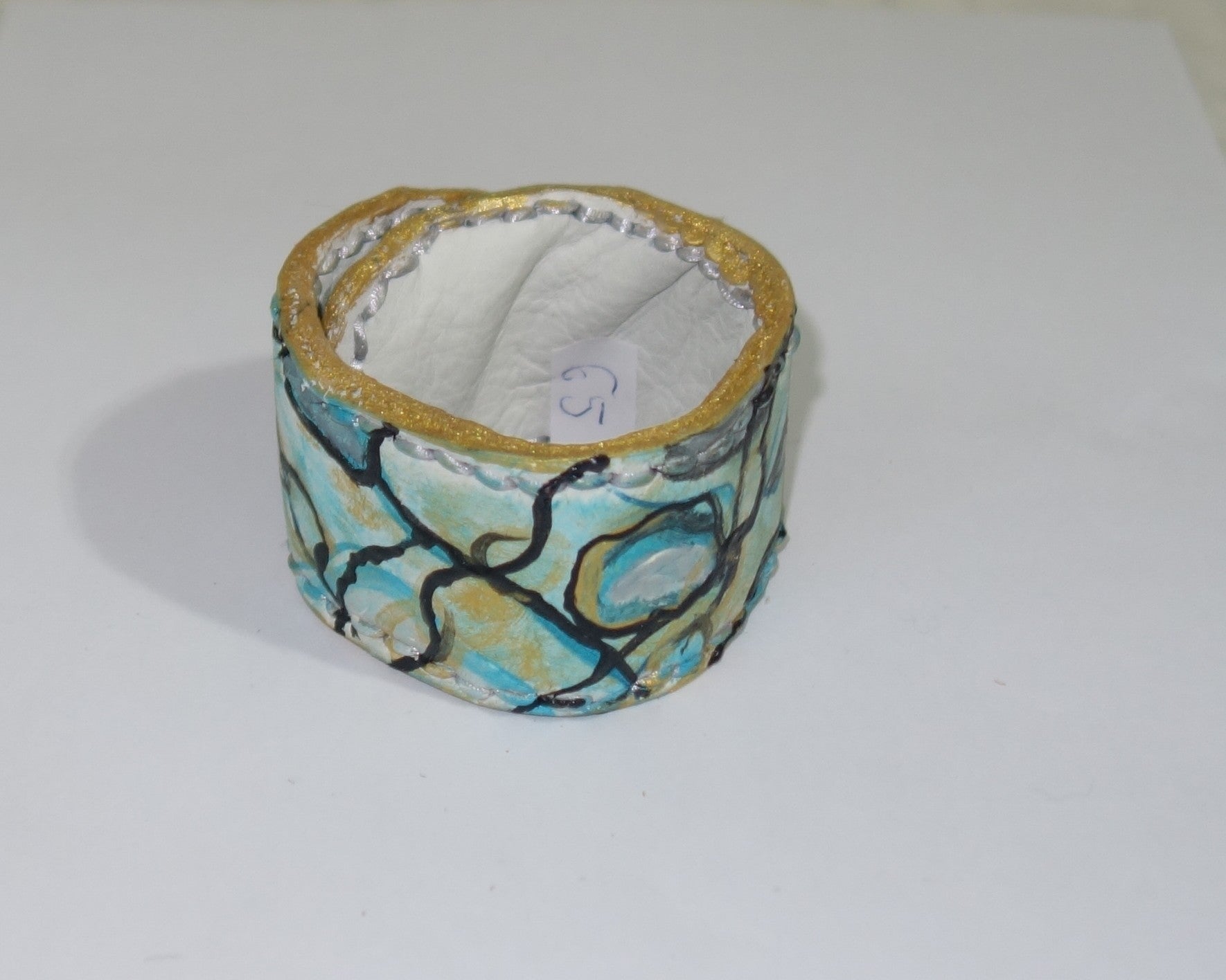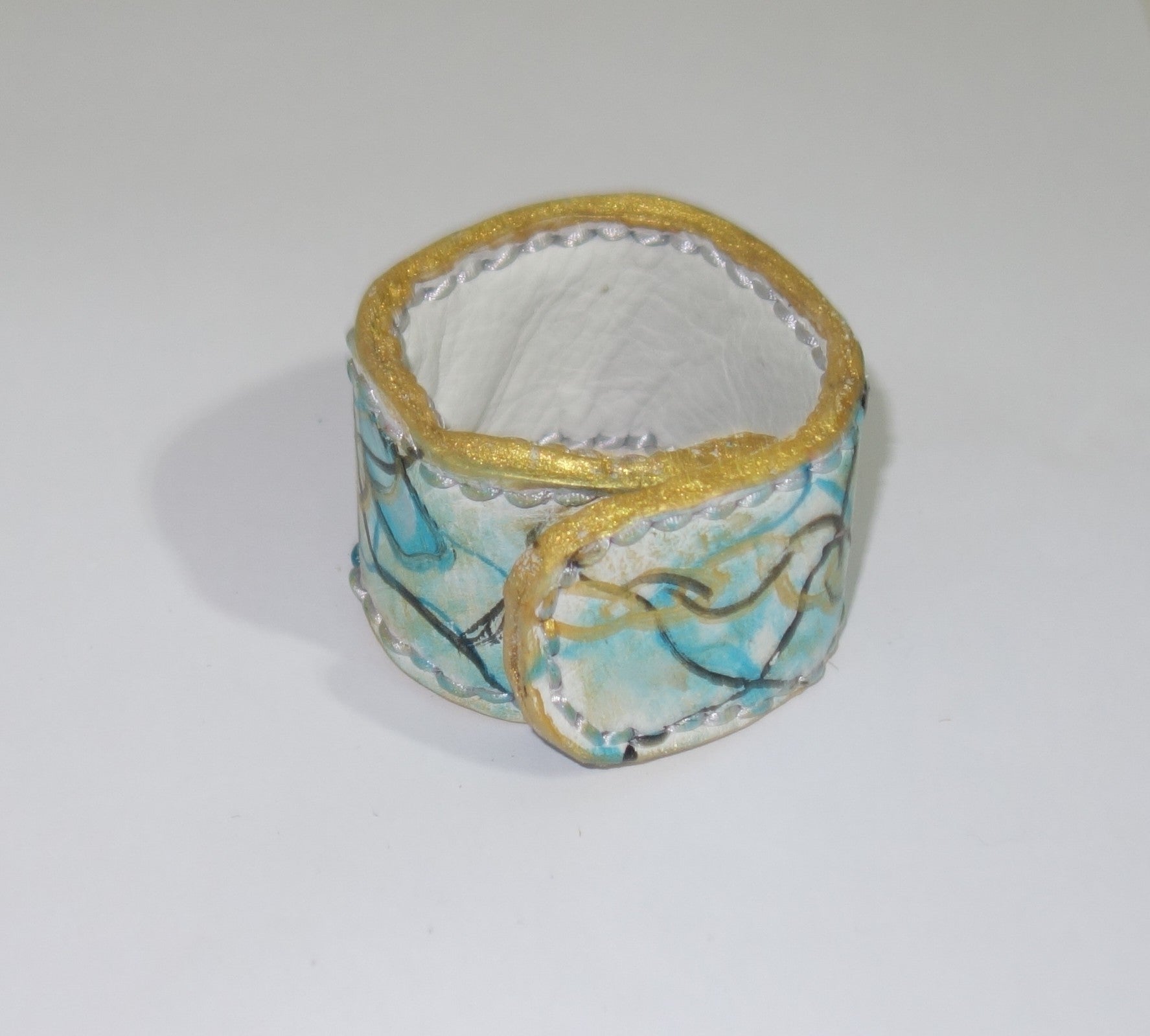 Bratara din piele naturala pictata manual, lata de 4 cm, se muleaza pe mana .
