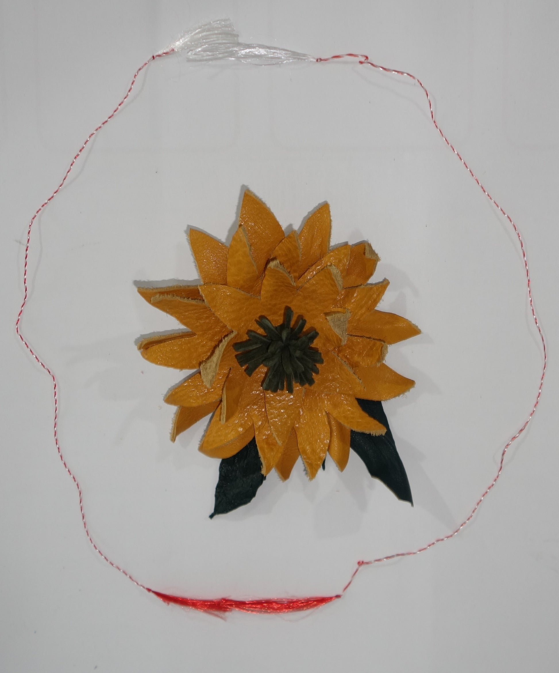 Brosa piele naturala de diametru 8 cm.