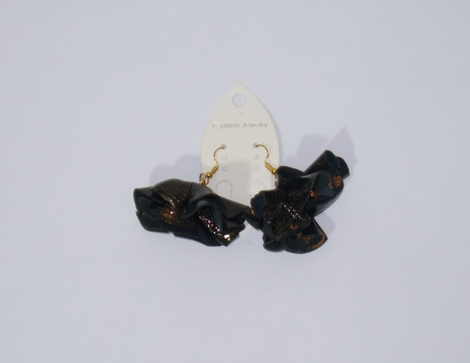 Cercei din piele naturala maro lacuita, executati si pictati manual, cu tortita din inox