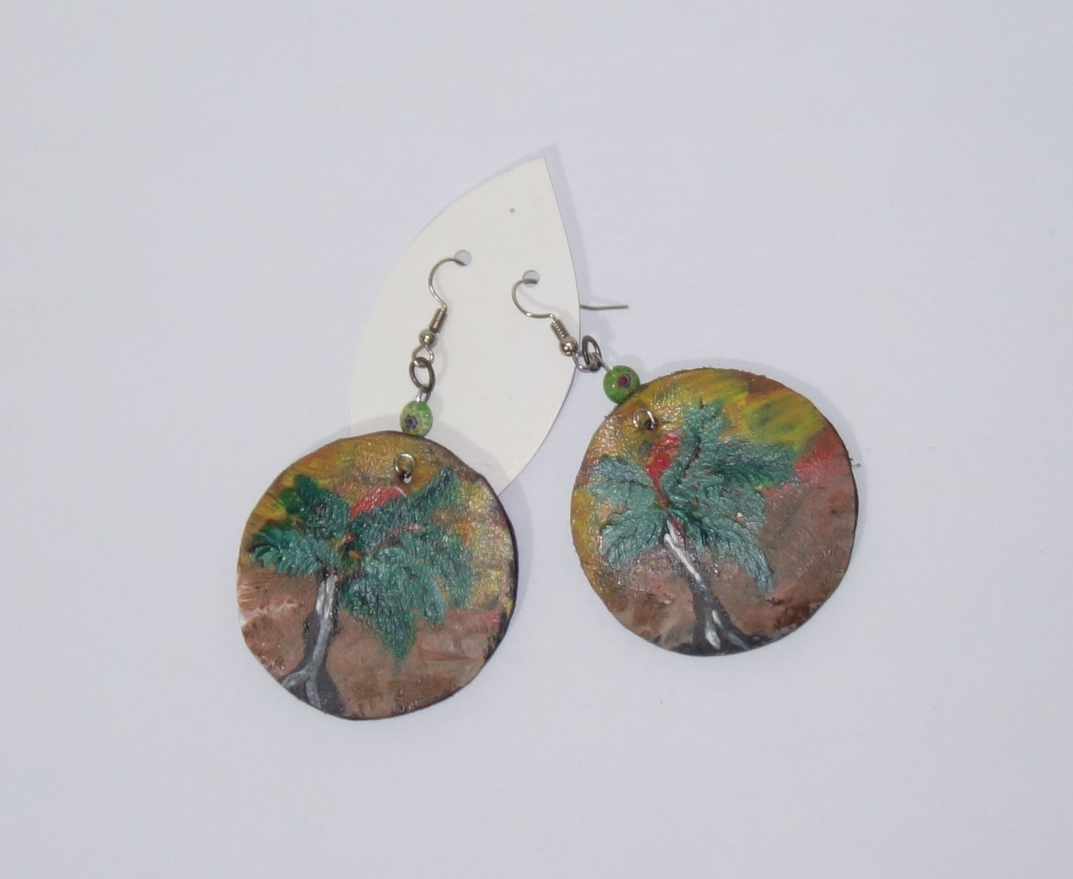 Cercei din piele naturala executati manual , dublati , cu tortita din inox iar partea rotunda este de 3.5 cm