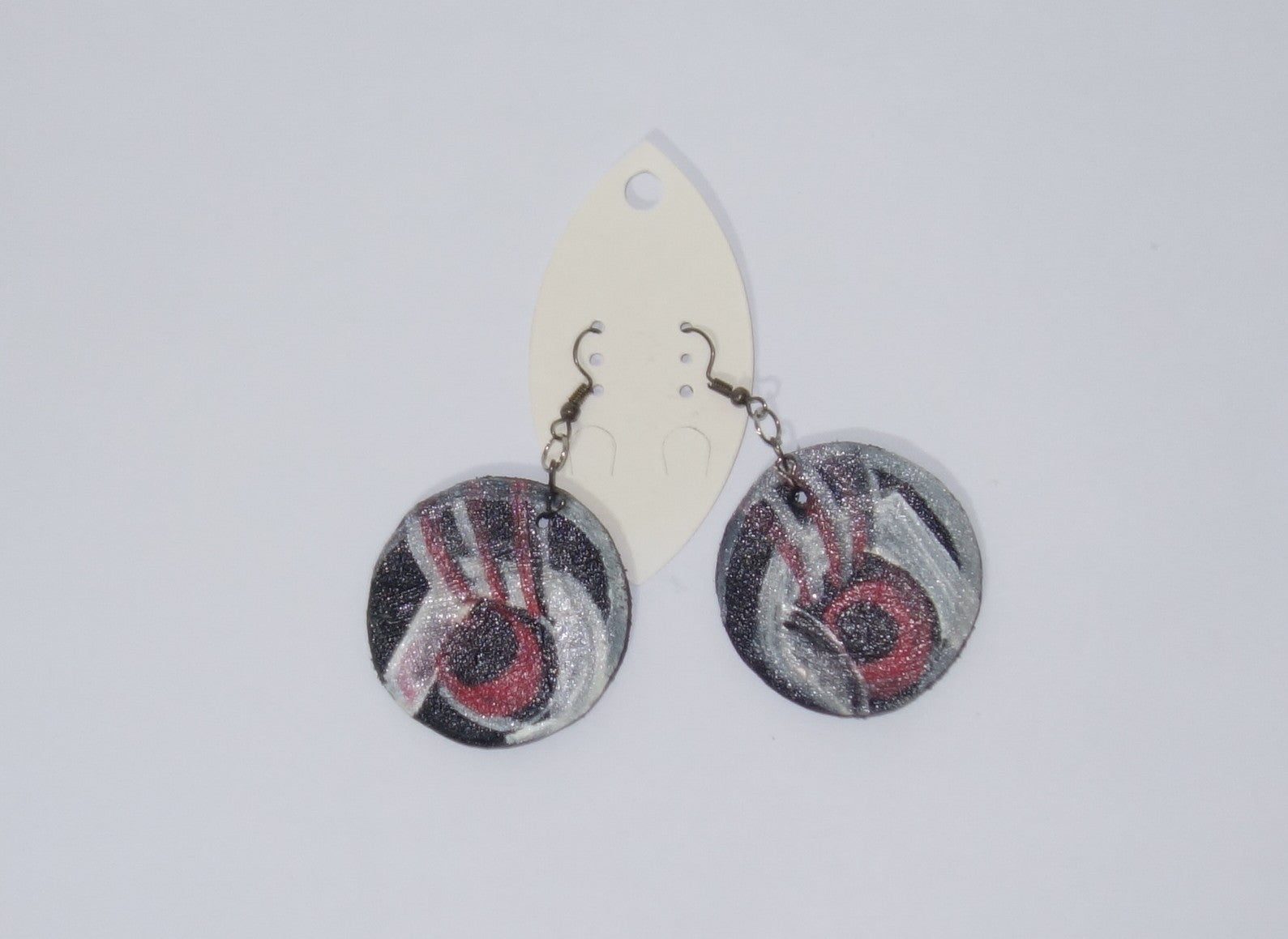 Cercei din piele naturala executati manual , dublati , cu tortita din inox iar partea rotunda este de 3.5 cm.