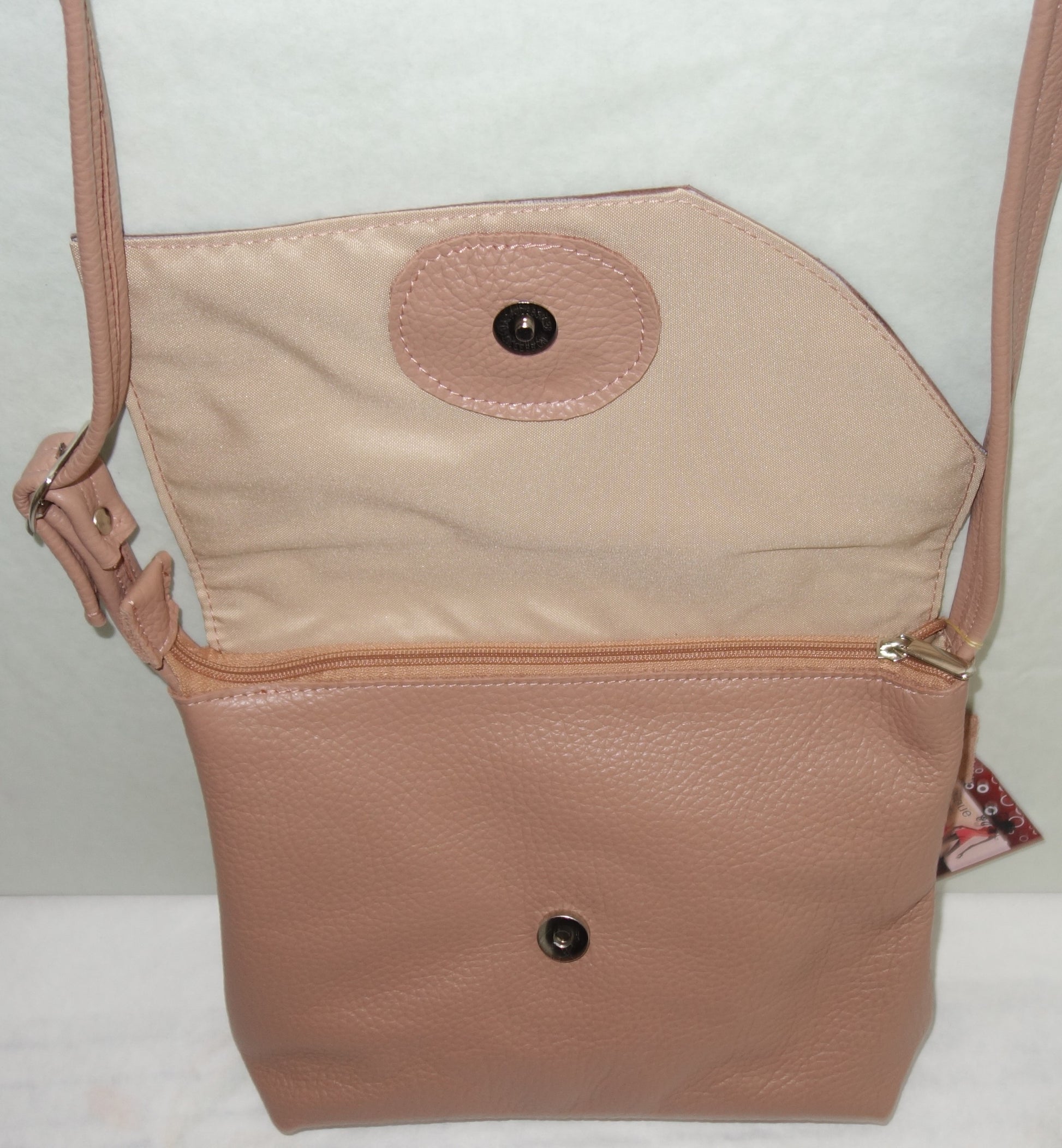 Geanta de piele naturala maro cappucino si maro ,cu doua buzunare interioare dintre care unul cu fermoar, inchidere cu fermoar si capsa magnetica. Dimensiuni 28 cm latime pe centru, 20 cm inaltime, baza de 7 cm, bareta de 125 cm lungime.