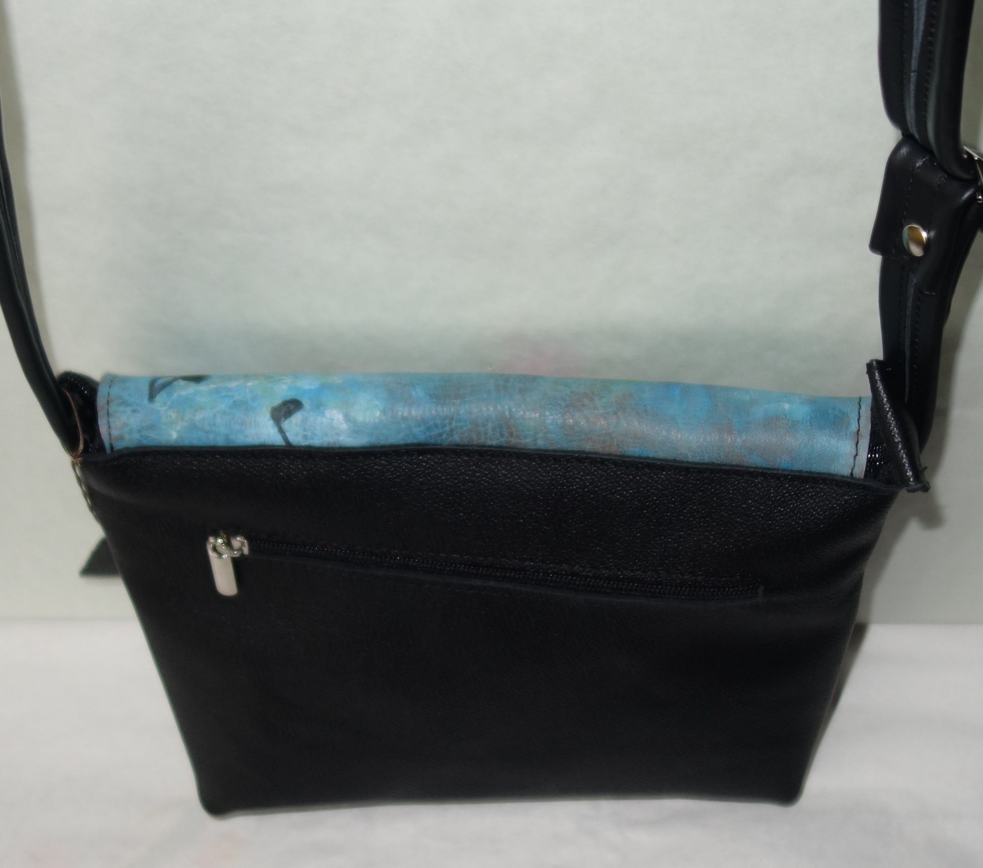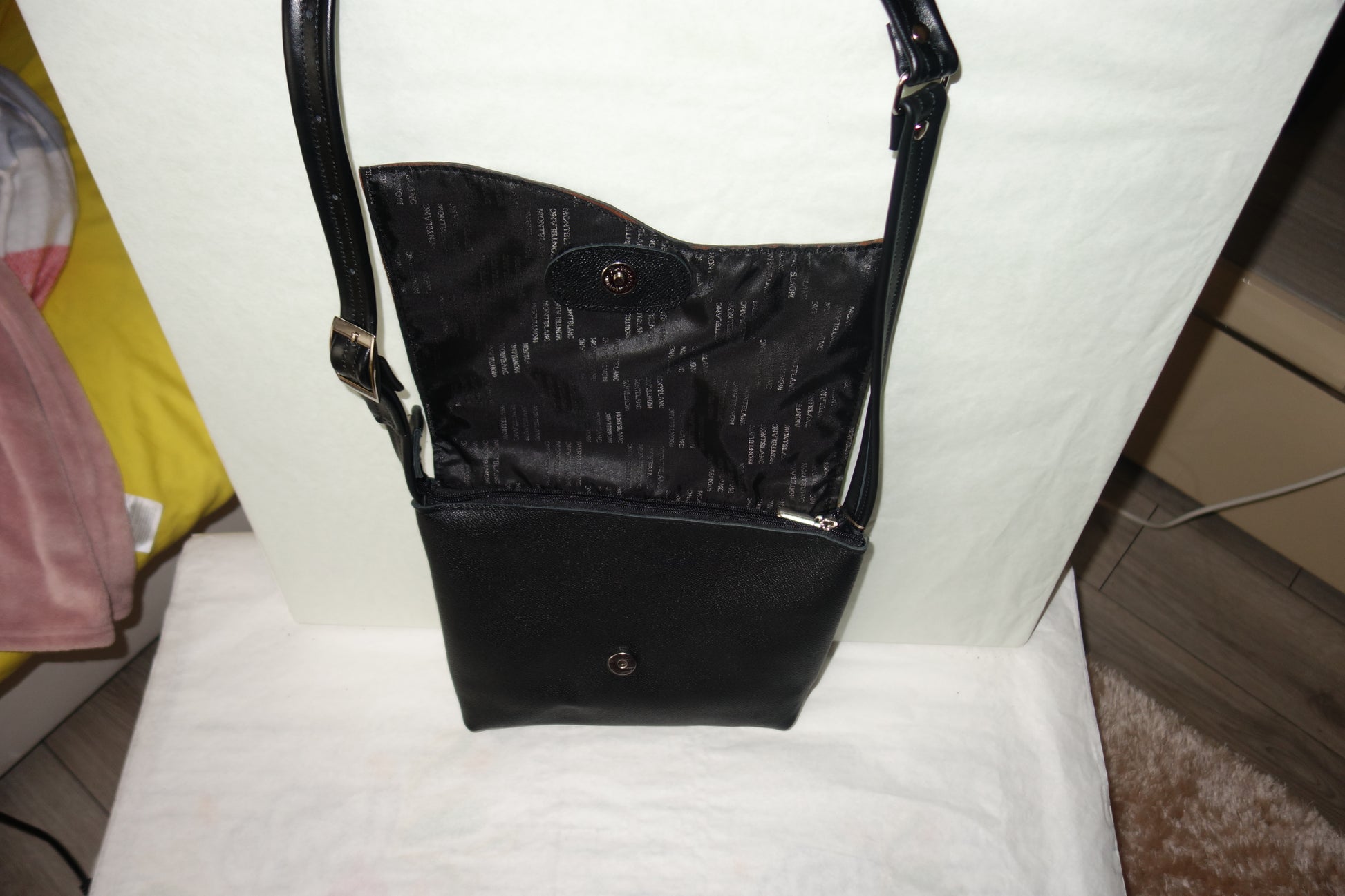 Geanta de piele naturala bleumarin si gri , cu doua buzunare interioare dintre care unul cu fermoar, inchidere fermoar si cu capsa magnetica. Dimensiuni 23 cm latime pe centru , 21 cm inaltime , baza de 8 cm, bareta reglabila de 125 cm lungime. Fermoar pe spate.