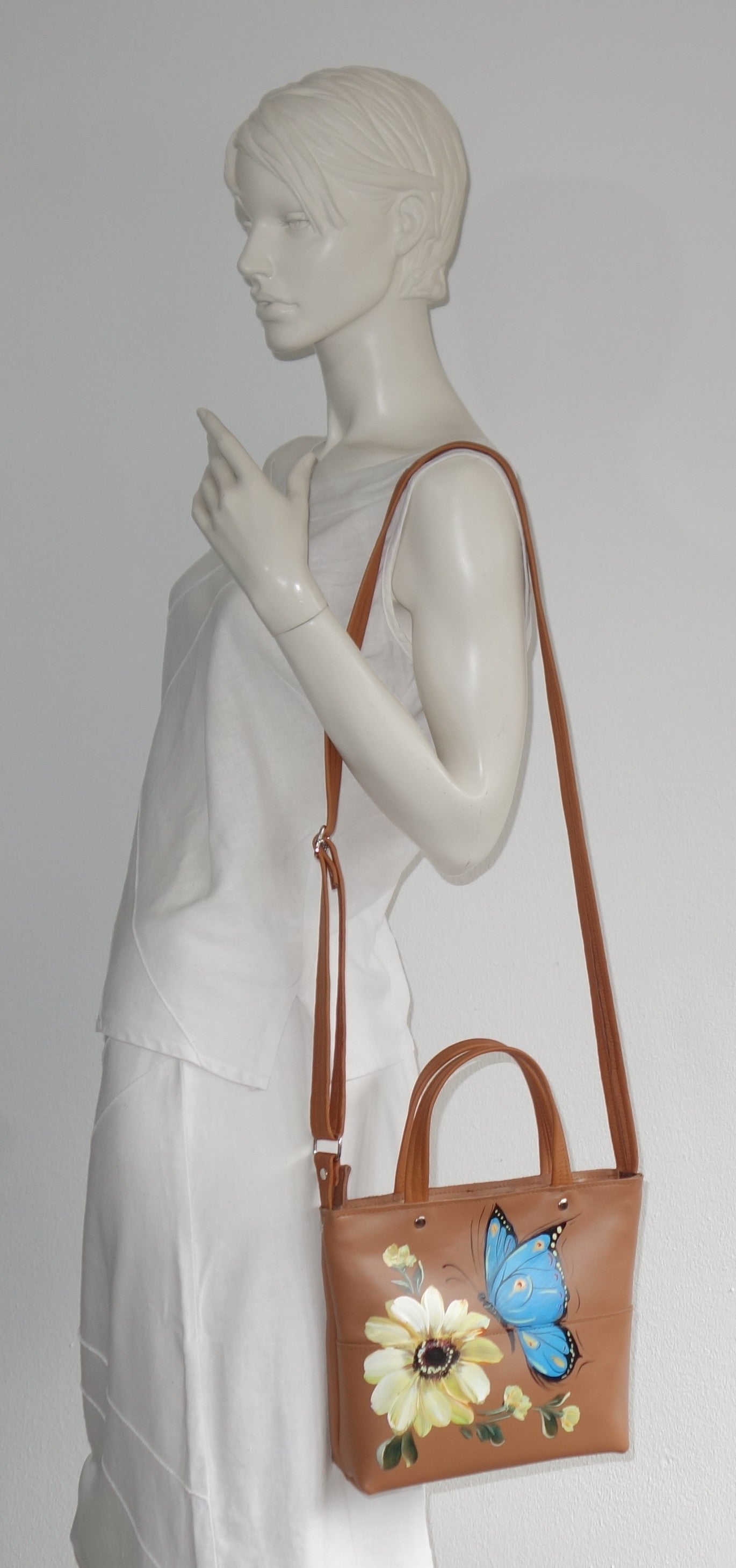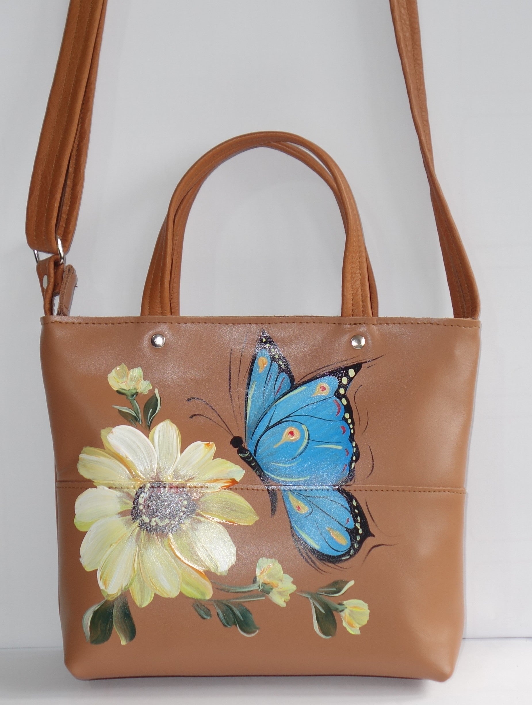 Pictata manual cu vopsele speciale pentru piele.