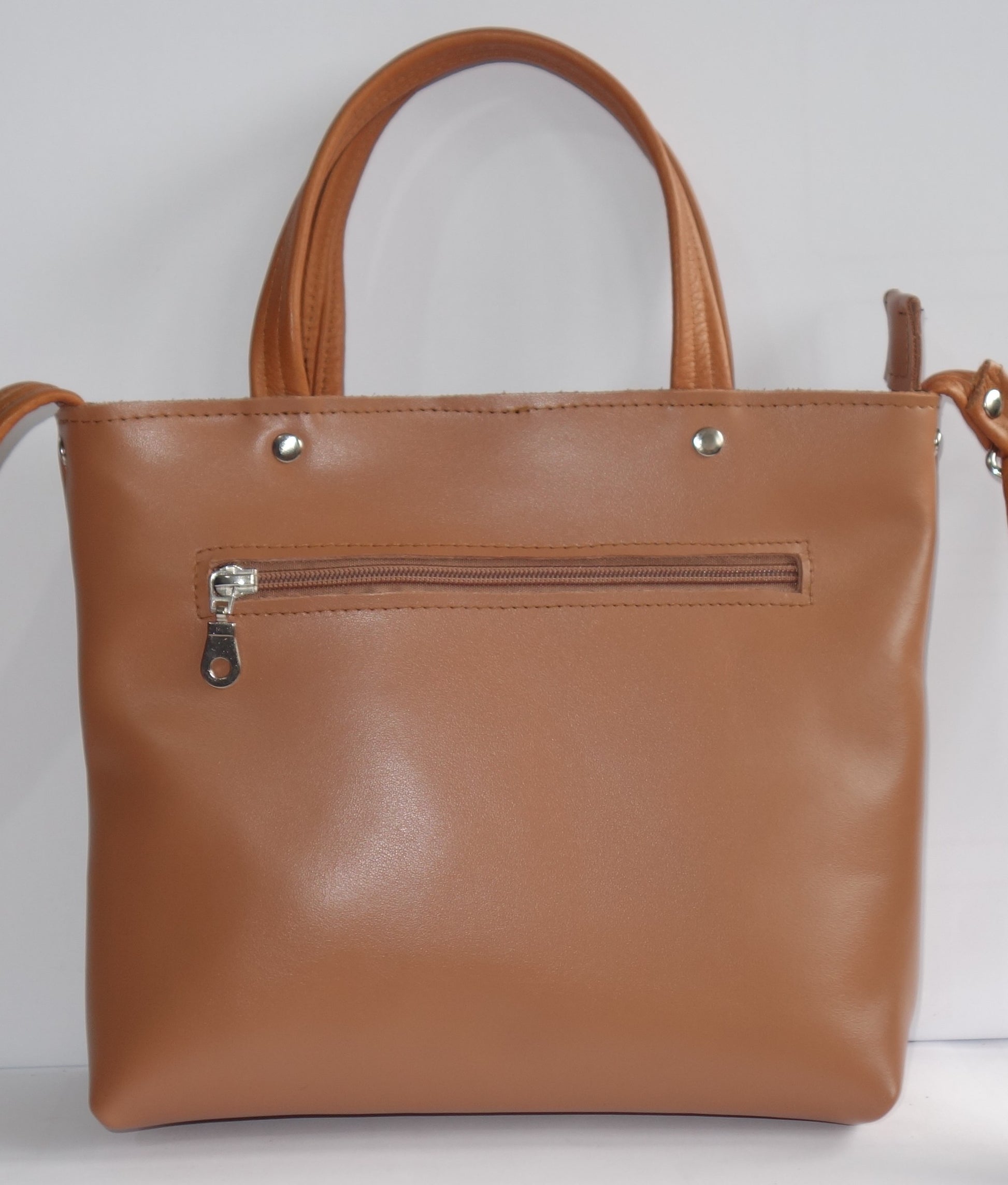 Geanta de piele naturala maronie, cu doua buzunare interioare dintre care unul cu fermoar, inchidere fermoar si cu capsa magnetica. Dimensiuni 29 cm latime pe centru , 21 cm inaltime , baza de 8 cm, bareta reglabila de 125 cm lungime. Fermoar pe spate.