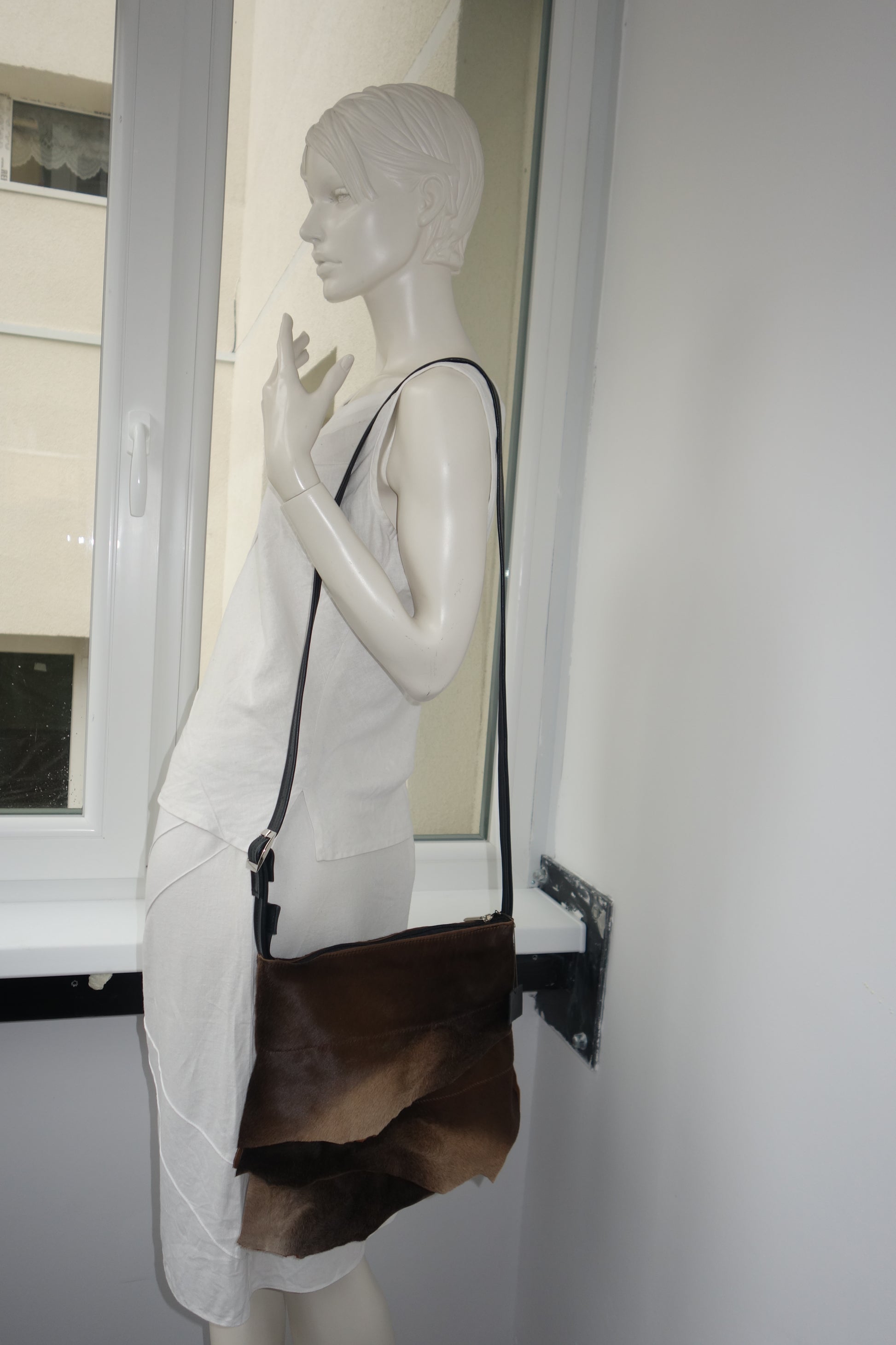 Geanta de piele naturala si blanita naturala , captusita si cu doua buzunare interioare dintre care unul cu fermoar, inchidere cu capsa magnetica . Dimensiuni : 28 cm latime , 22 cm inaltime ,baza de 7 cm, bareta dublata si reglabila de 125 cm lungime.