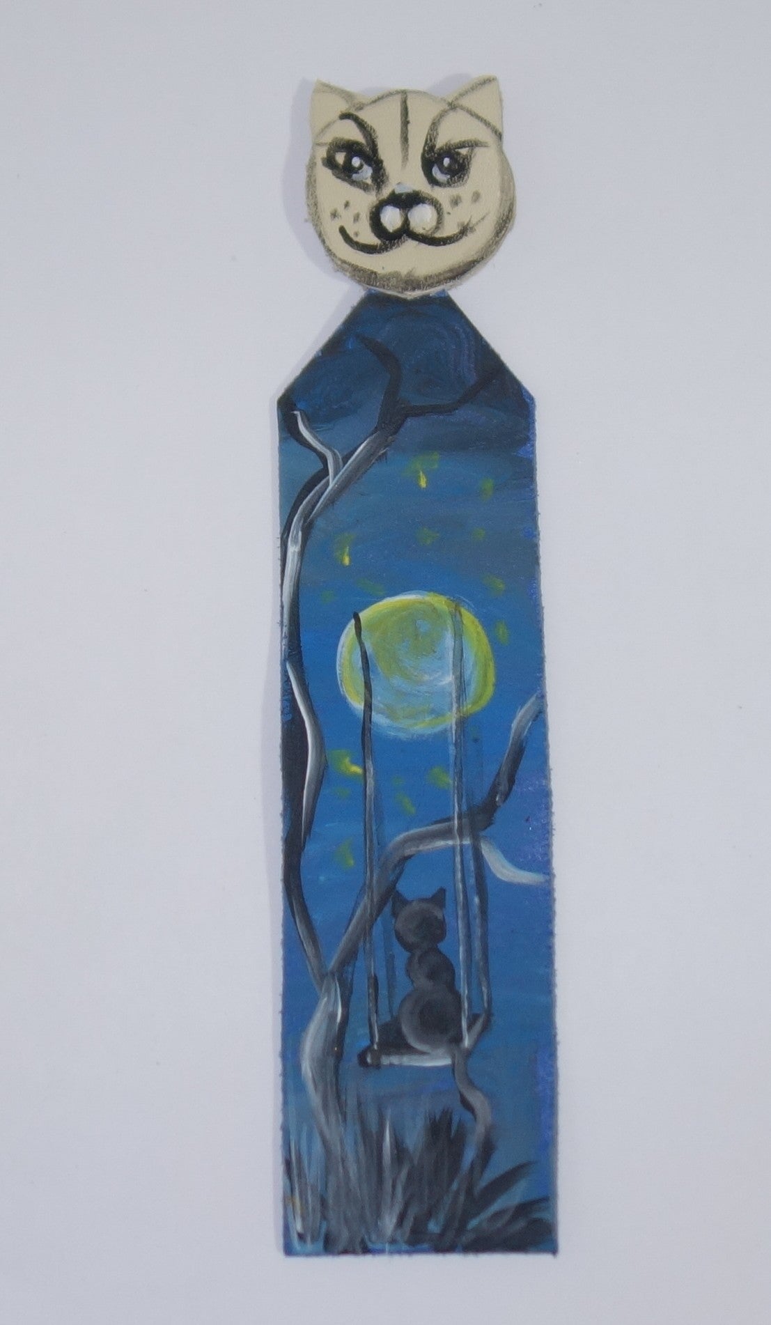 Semn de carte din piele naturala, de 19 x 5 cm, pictat manual. Unicat.