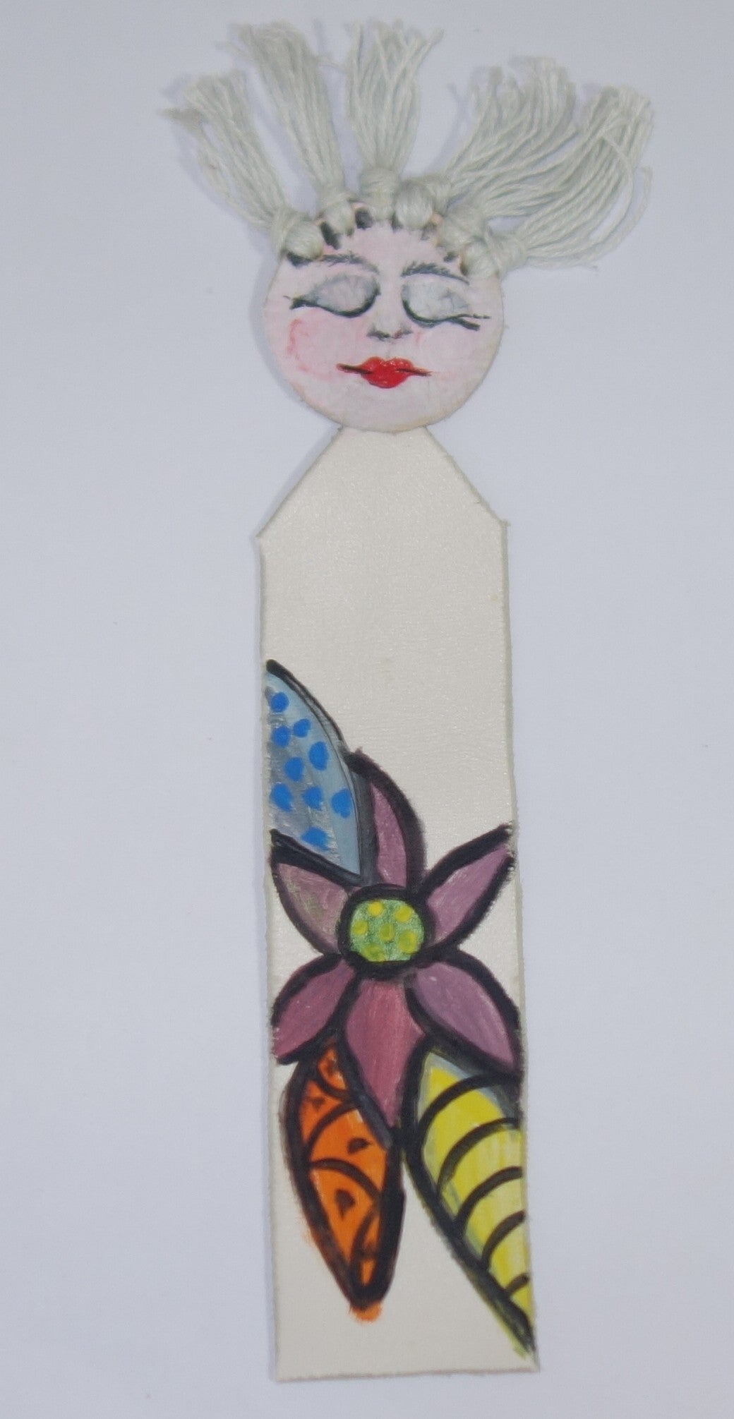 Semn de carte din piele naturala, de 19 x 5 cm, pictat manual. Unicat.
