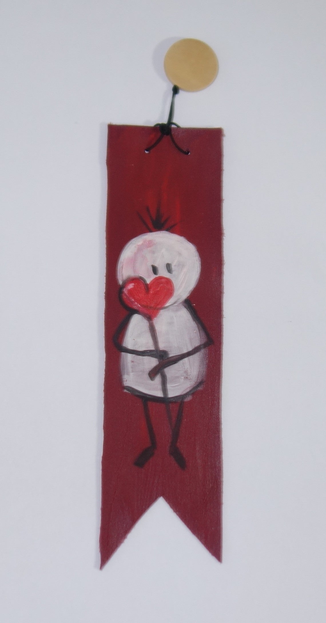 Semn de carte din piele naturala, de 19 x 5 cm, pictat manual. Unicat.