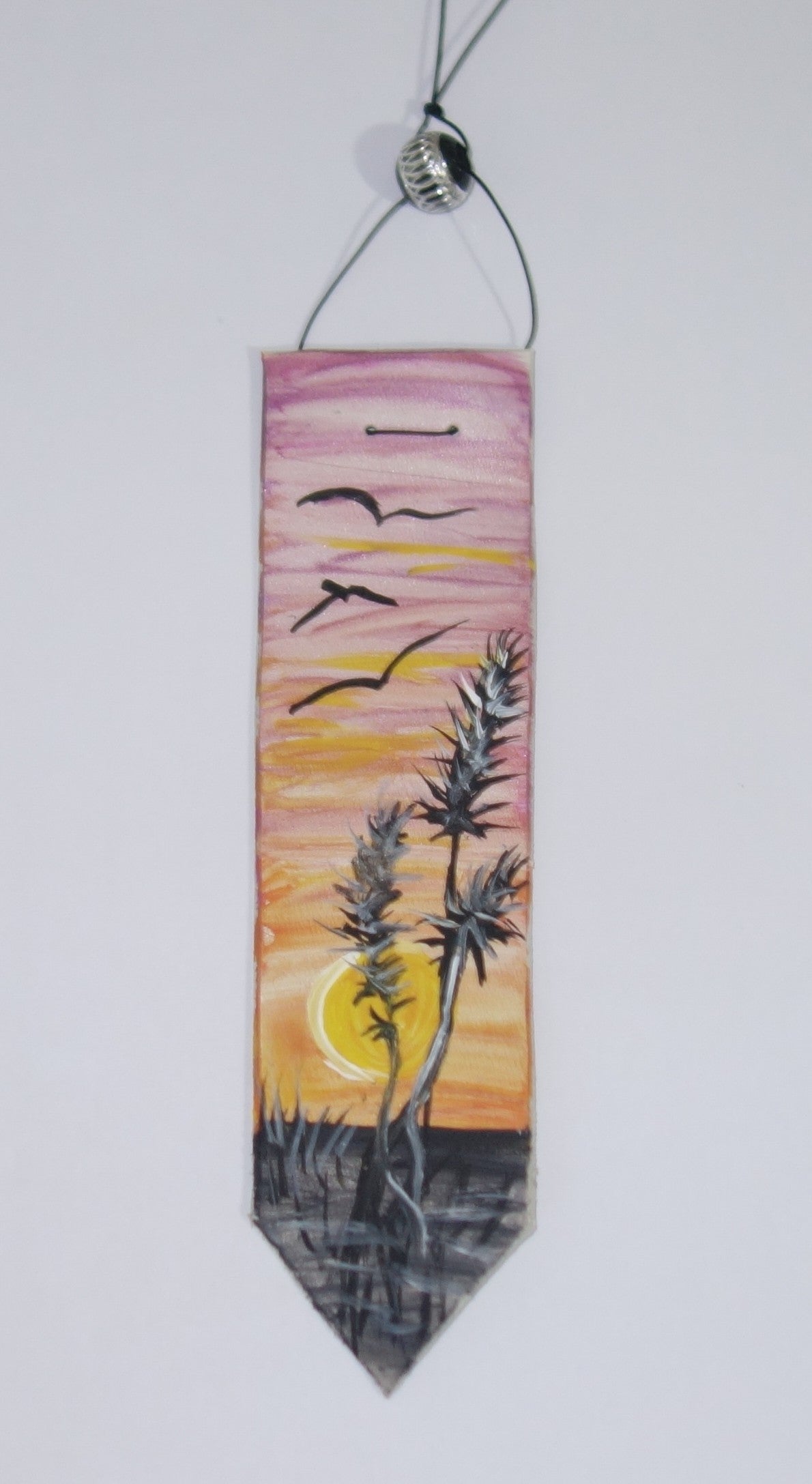 Semn de carte din piele naturala, de 19 x 5 cm, pictat manual. Unicat.