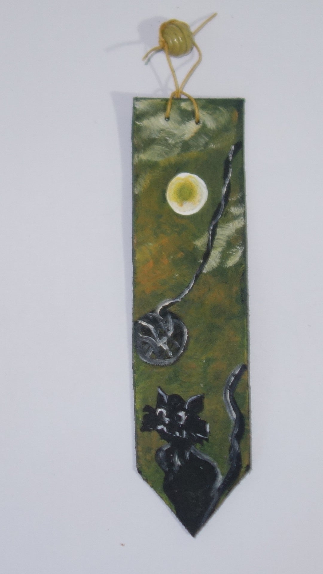 Semn de carte din piele naturala, de 19 x 5 cm, pictat manual. Unicat.